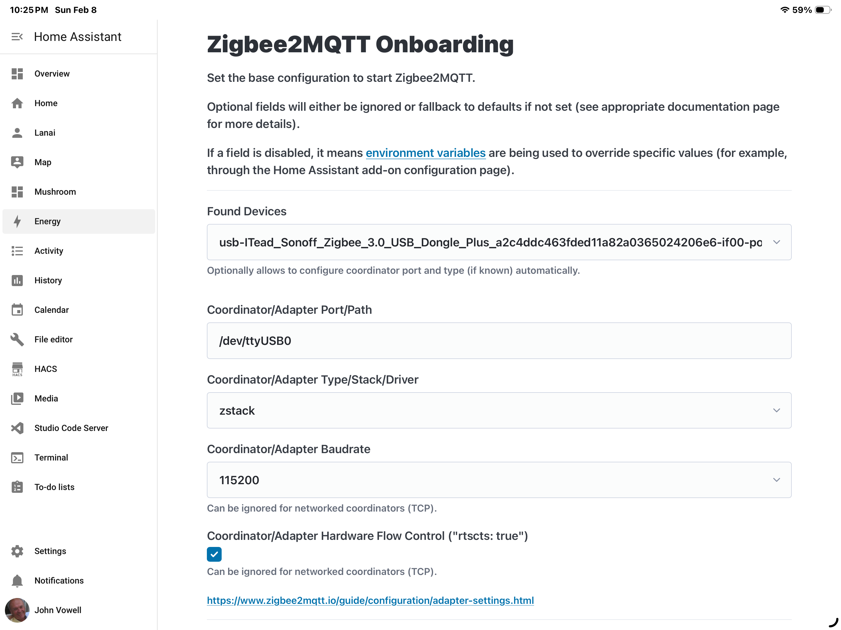 I went to Home Assistant hardware and found the following: /dev/serial/by-id/usb-ITead_Sonoff_Zigbee_3.0_USB_Dongle_Plus_a2c4ddc463fded11a82a0365024206e6-if00-port0