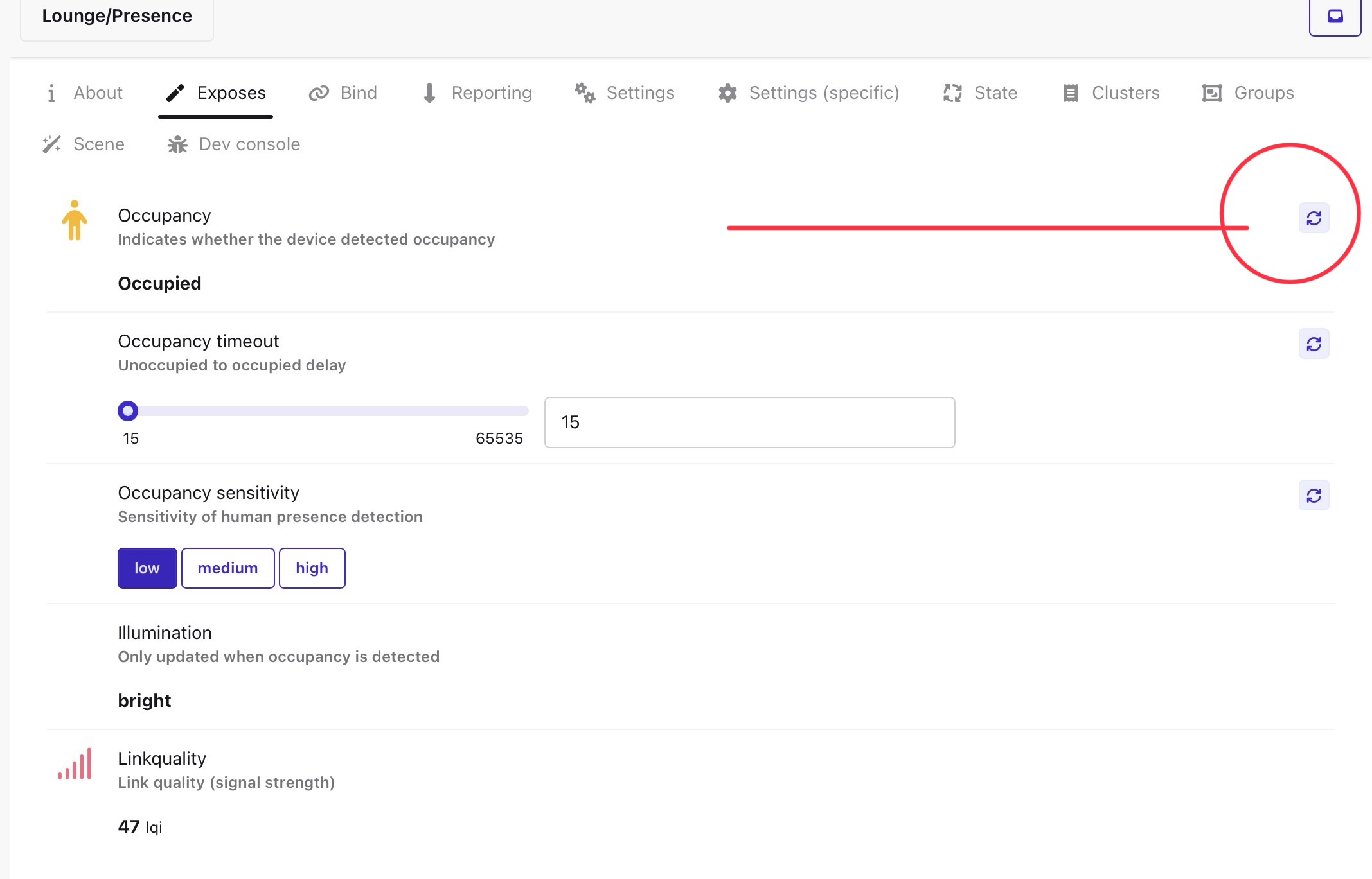 Does anyone know how to replicate the refresh button in zigbee2MQTT in a Home Assistant automation or Mqtt command?