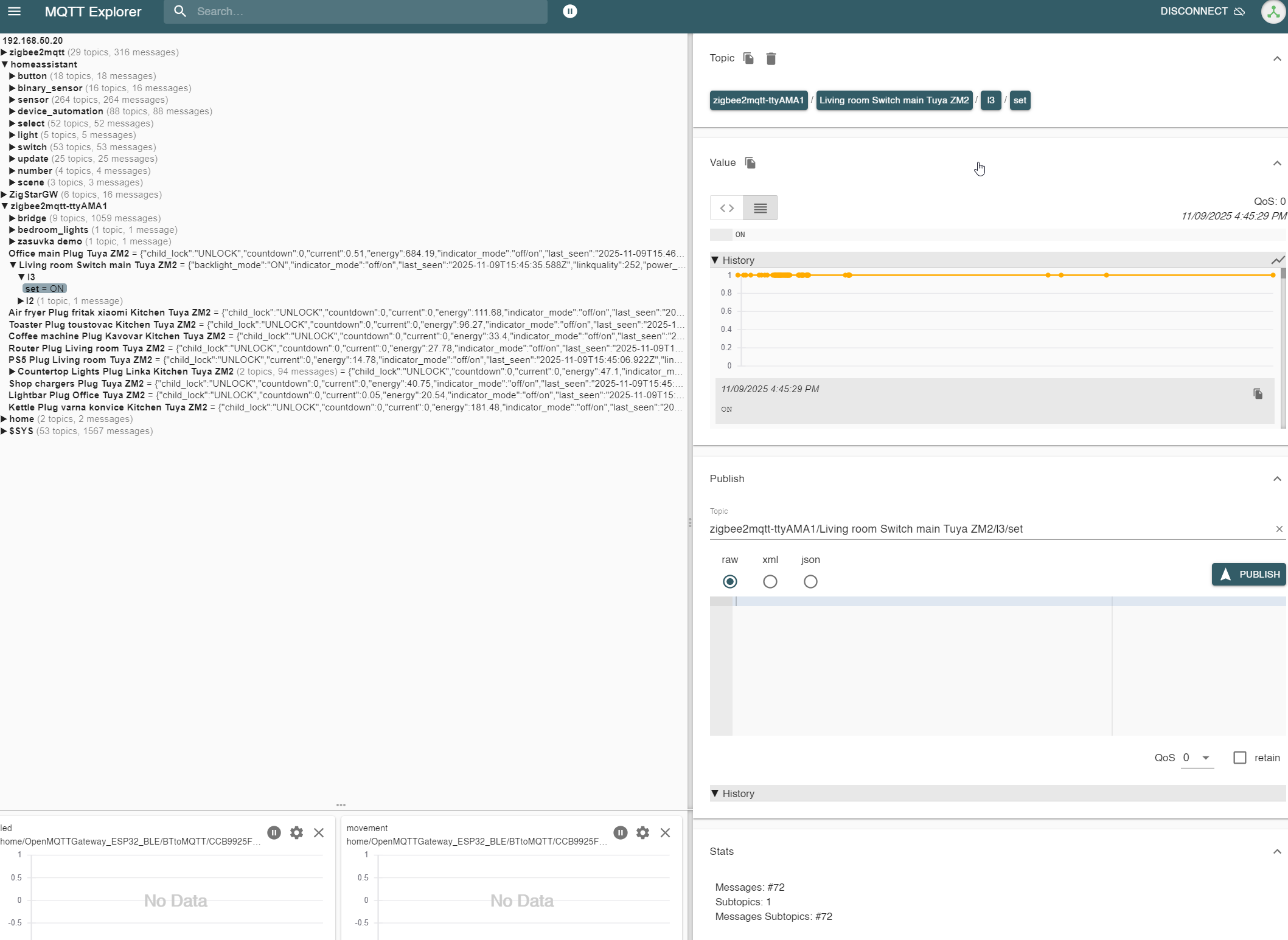 When i press button to turn on the switch in HA message count in mqtt explorer and that is only message i see there