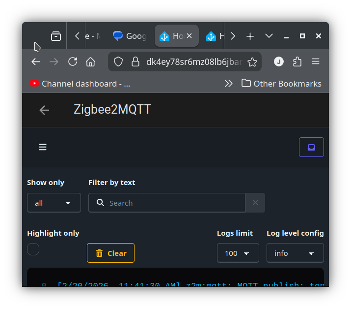 [2026-02-20 09:46:54] e[34mdebuge[39m: zh:zstack:znp: <-- AREQ: AF - dataConfirm - {"status":0,"endpoint":1,"transid":22}