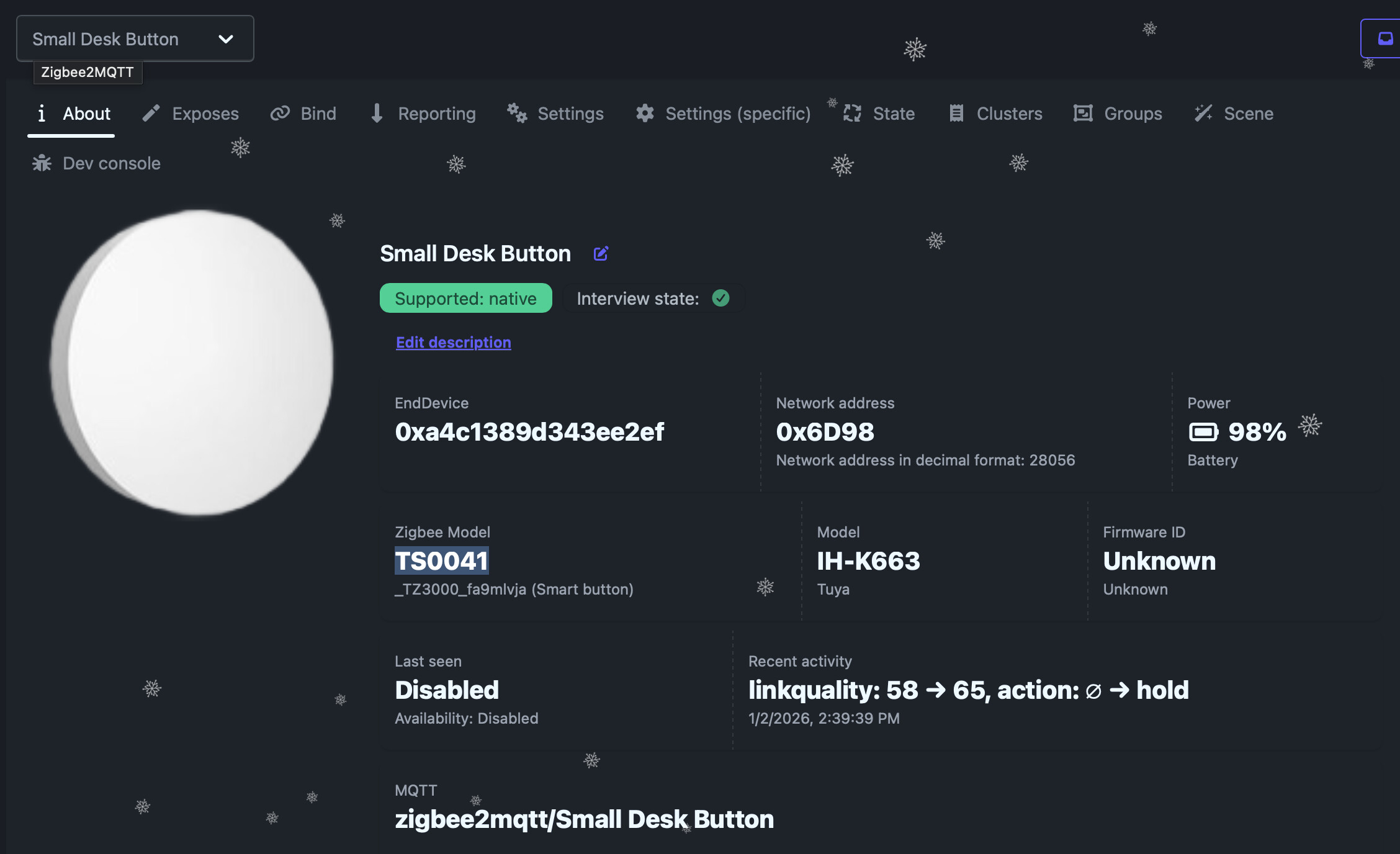 Automate your Tuya TS0041 1-Button Scene Switch using Zigbee2MQTT.