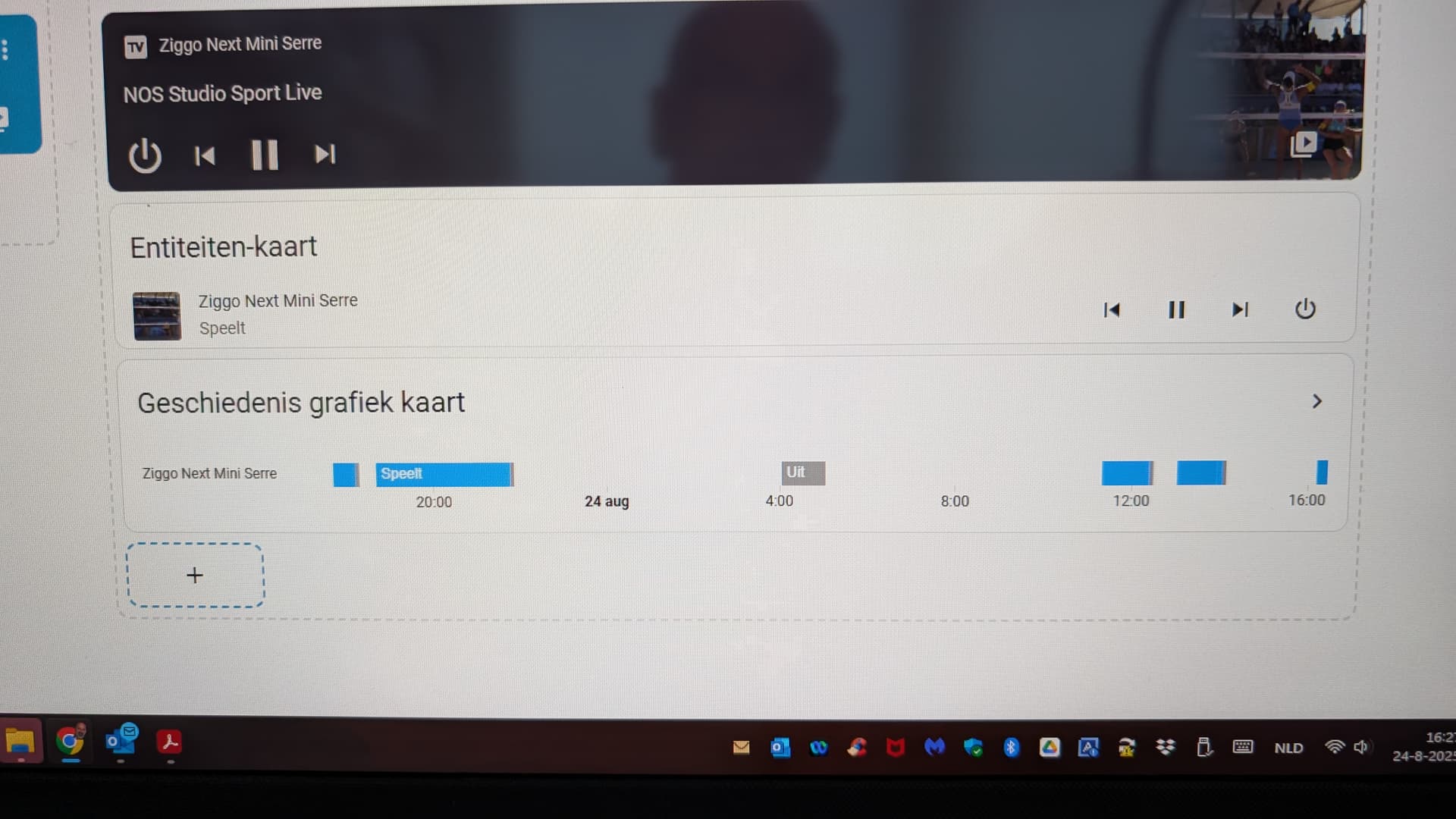 the first page is a mediaplayer widget of what is playing on the Ziggo Next Mini, with a button to the second page.