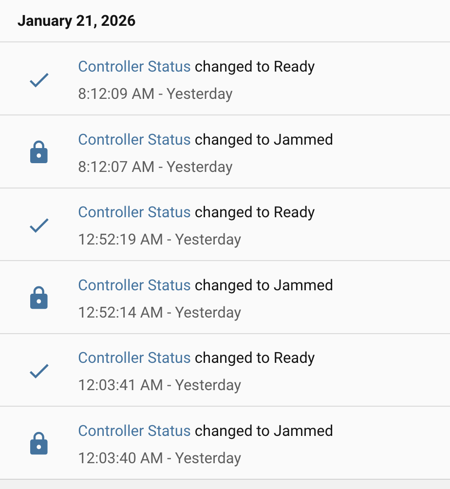I don’t know how to pull it from hass directly, though that would be a great stat to have. I have been pulling it from my zwave-js-ui logs: zgrep 'The controller is jammed' ~hass/zwave-js-ui/store/logs/zwavejs_2026*.log* | awk -F: '{print $1}' | uniq -c. I run an old-school stand-alone instance, so I am unsure how you would access the logs with a more modern install.